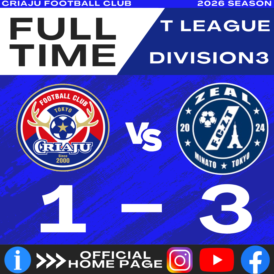 東京都クラブユース U-15 T3リーグ 前期リーグ第2節 2026 3/15 試合速報 2026-03-15 クリアージュFC B 対 FC ZEAL TOKYO 3月14日(土) 中央大学多摩G 前半:1-3 得点者:伊藤 後半:0-0 合計:1-3 試合速報 URLをコピーしました! 東京都クラブユース U-15 T1リーグ 前期リーグ第1節 東京都クラブユース U-15 T1リーグ 前期リーグ第2節